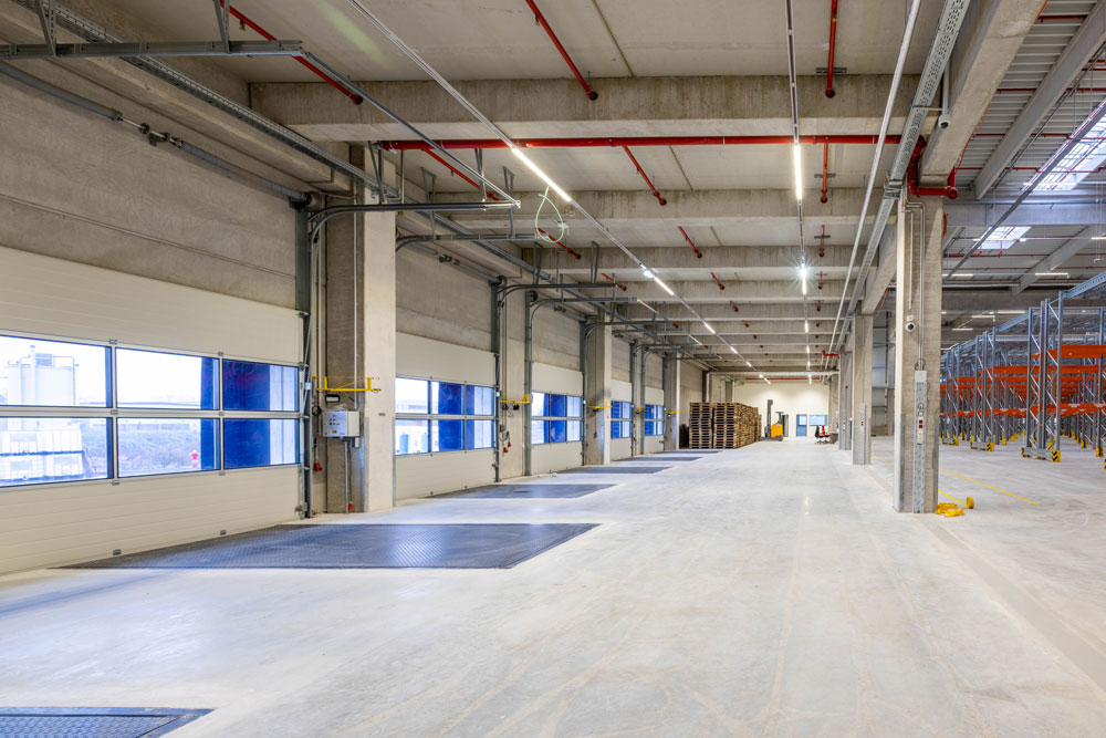 • Deckenhöhe 12,3 m ermöglicht effiziente Nutzung mit Hochregallagern
